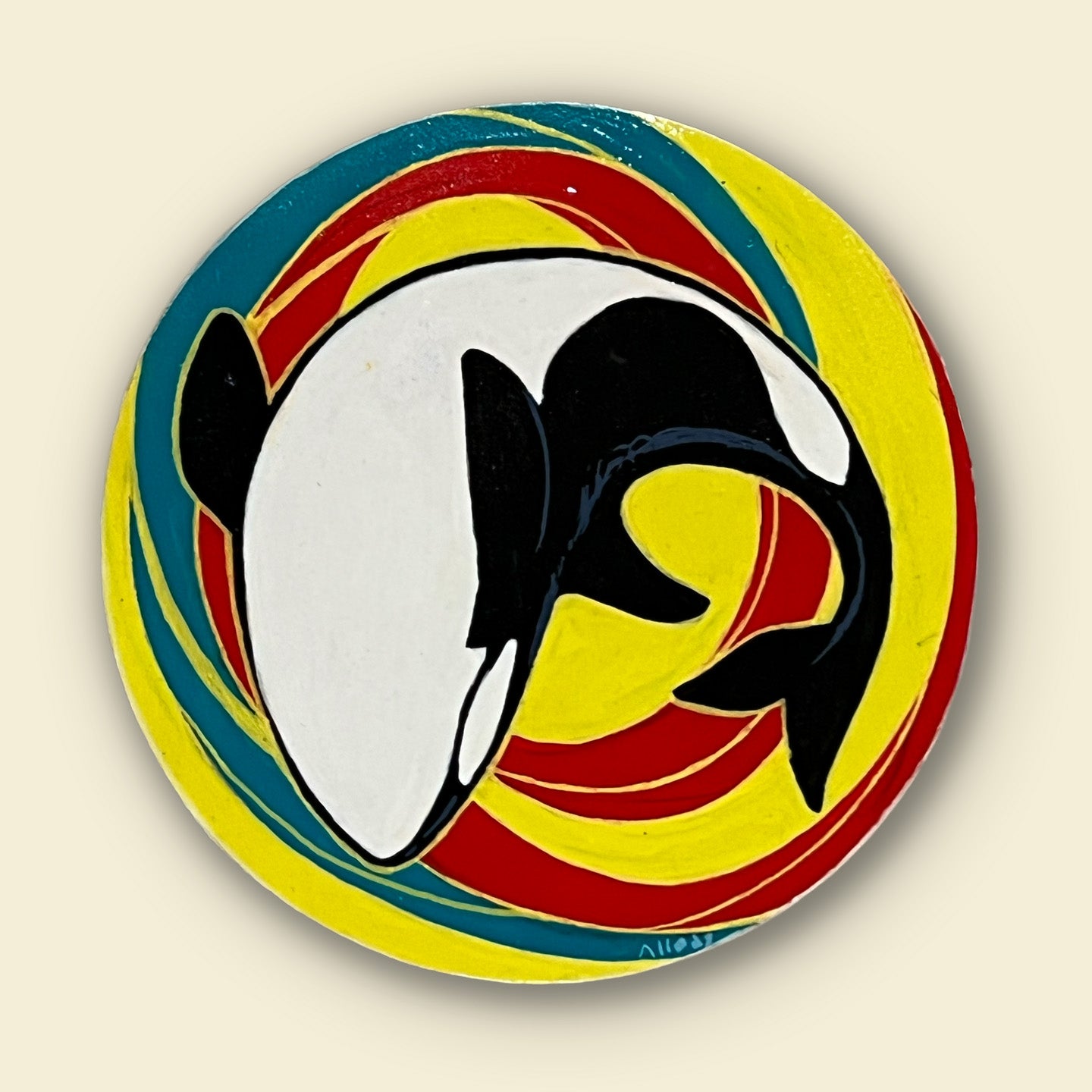 Acrylic on wood. Measures approx 12 cm in diameter (4 in).
