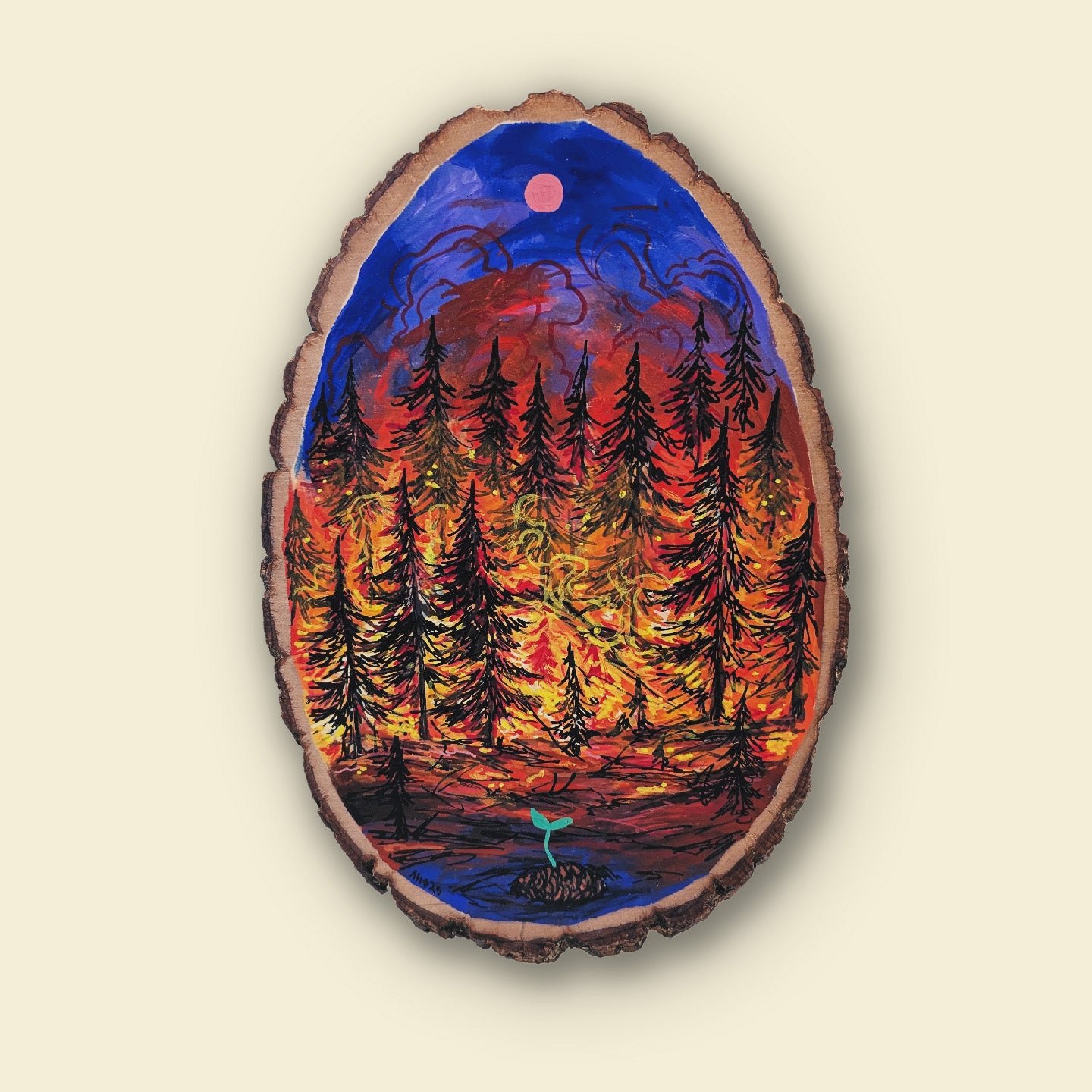 Acrylic on wood round. Measures approx 30 x 15 cm (13 x 7 in).