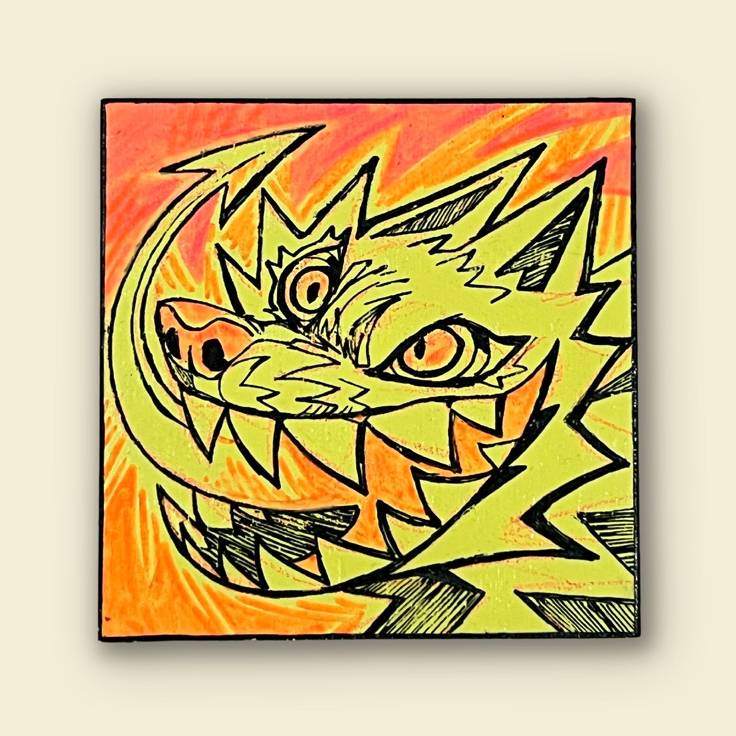 Acrylic on wood. Measures approx 12 x 12 cm (4 x 4 in).